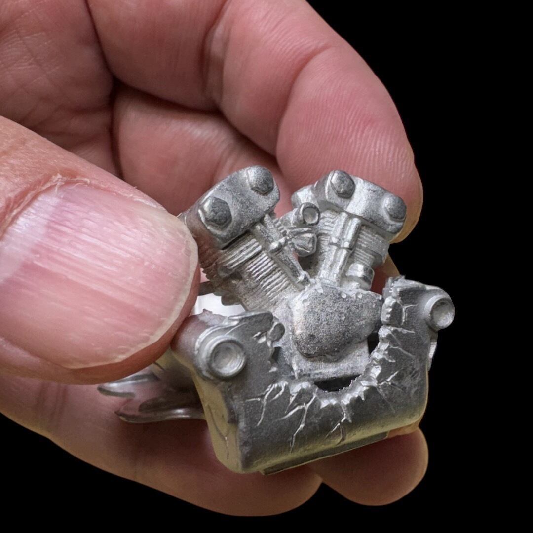 mufflerパーツを組む時は画像2枚目のようにエンジンを浮かせ、右から入れてください。